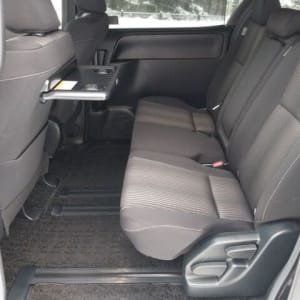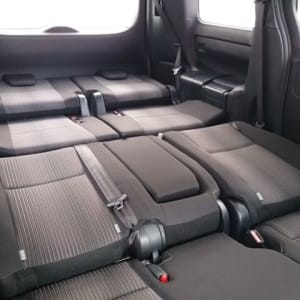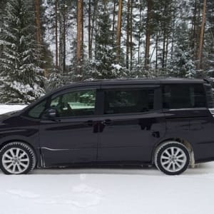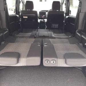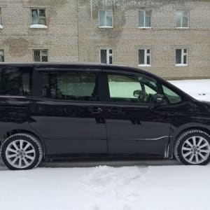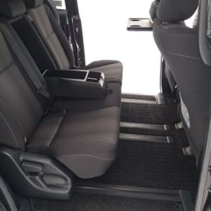 Черная обивка сидений в сочетании с черным потолком, придает салону неповторимую строгость, а вставки из рояльного лака только усиливают эти ощущения. 8 мест второй ряд диванчиком ( очень редко ), имеет множество вариантов трансформации, от спального места, до грузового фургона ( 900кг ). Регулировка руля в 2- ух плоскостях по вылету и по высоте, регулировка сиденья водителя в 3-х плоскостях.