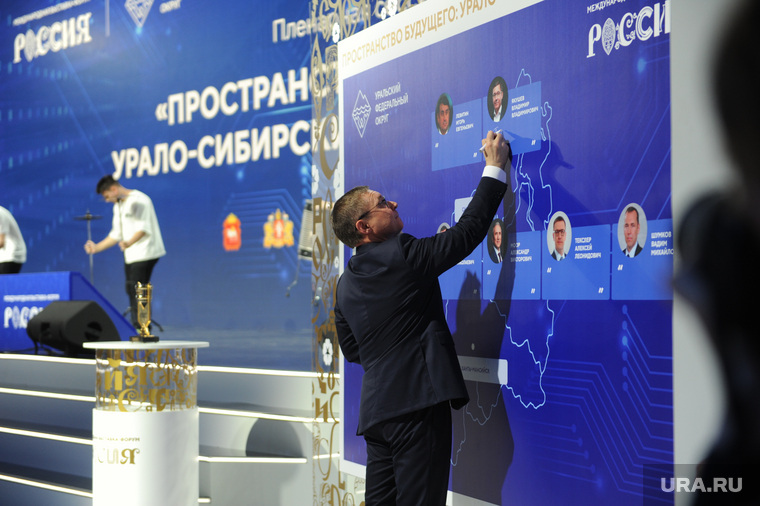 «Полпреды сильно по этому поводу переживали, поскольку возникает путаница, кто за чьи презентации отвечает. Якушев приложил аппаратные усилия, чтобы регионы УрФО так не разделяли», — знает источник, близкий к аппарату окружных властей. Фото: Вадим Ахметов © URA.RUЯкушев действительно был в самом центре события. Его люди готовили программу большой пленарной сессии «Пространство будущего: Урало-Сибирский макрорегион», согласовывали губернаторские выступления. Начало было намечено на 15:00.