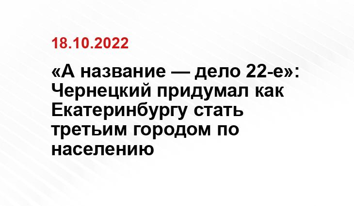 «А название — дело 22-е»: Чернецкий придумал как Екатеринбургу стать третьим городом по населению