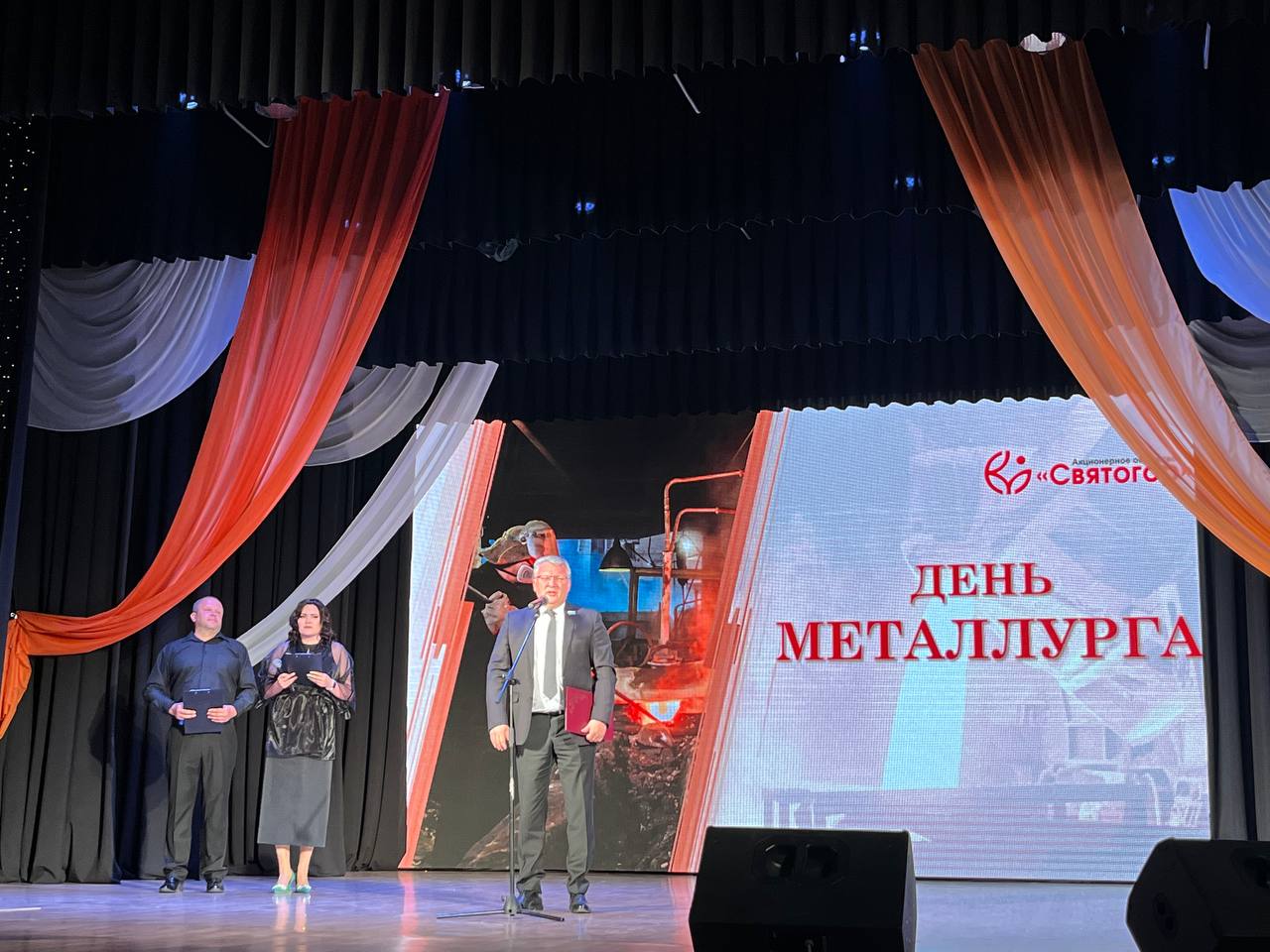 В тот же день народного избранника встречал «Святогор». Торжественный вечер, посвященный профессиональному празднику, проходил в ДК «Металлург». В преддверии этой даты градообразующее предприятие Красноуральска удостоило наград различного уровня 240 работников комбината, в том числе звание «Почетный металлург» было присвоено старшему мастеру обжигового отделения металлургического цеха Павлу Байкалову. В адрес каждого из этих людей Сергей Владимирович обратился с искренними словами благодарности.