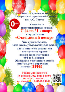 С 4 по 31 января Центральная городская библиотека им. А.С. Попова впервые проводит PR-акцию «Счастливый номер».