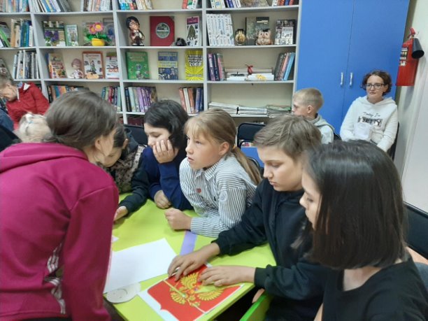Накануне праздника Дня России для детской оздоровительной площадки СОШ № 9 в Центральной городской детской библиотеке прошла познавательная игра «Цветик-семицветик» . Семь разноцветных лепестков –семь конкурсов. Все задания были связаны с символикой России.