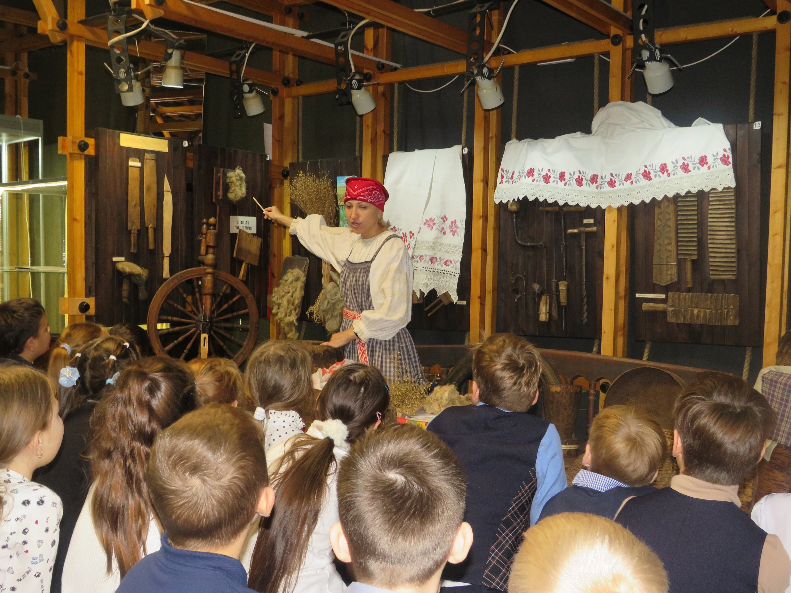 В ходе экскурсии ребята узнали, как на Руси выращивали лён, что из него производили и как эту культуру обрабатывали прежде, чем она превратится в ткань. Ребята познакомились с предметами русского быта, старинными инструментами для обработки льна. Рассмотрели льняную одежду, полотенца и скатерти. Прослушали сказку «Как в поле рубашка выросла» и смогли «вырастить» свой лён, поиграв в хороводную игру «А мы сеяли, сеяли лён».