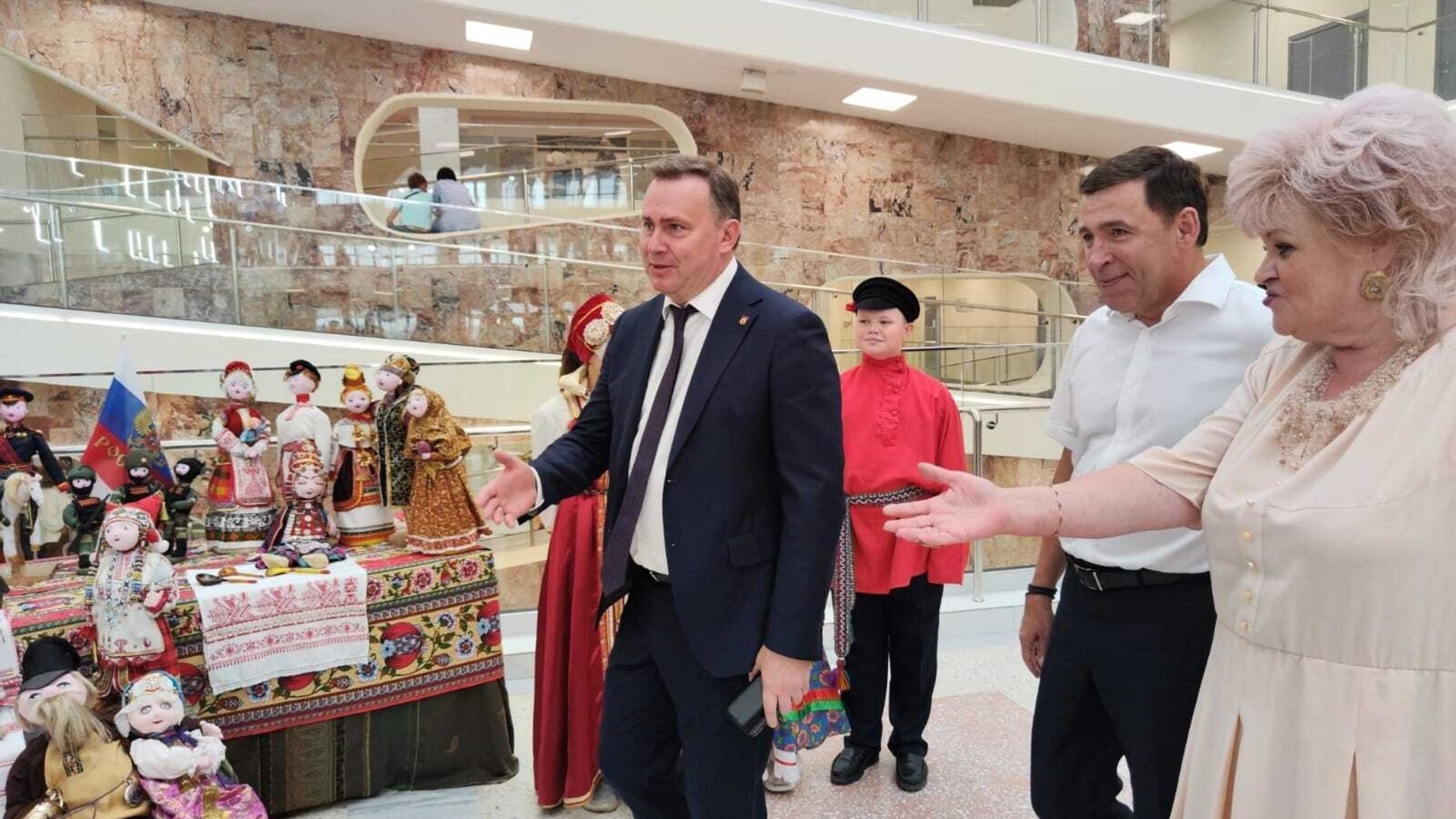 Юные жители Нижнего Тагила тепло встретили первых лиц города и области. Подарки от педагогов и творческих детей появились у Евгения Куйвашева и Владислава Пинаева.
