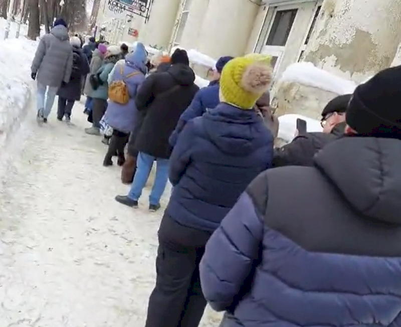 Большая очередь собралась у штаба кандидата в президенты в Екатеринбурге
