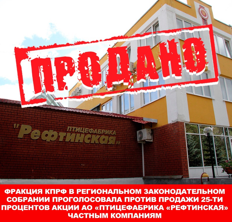 Фракция КПРФ в региональном Законодательном Собрании проголосовала против продажи 25-ти процентов акции АО «Птицефабрика «Рефтинская» частным компаниям