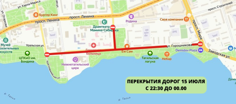 Перекрытия дорог Нижнего Тагила в День металлурга / Яндекс.Карты