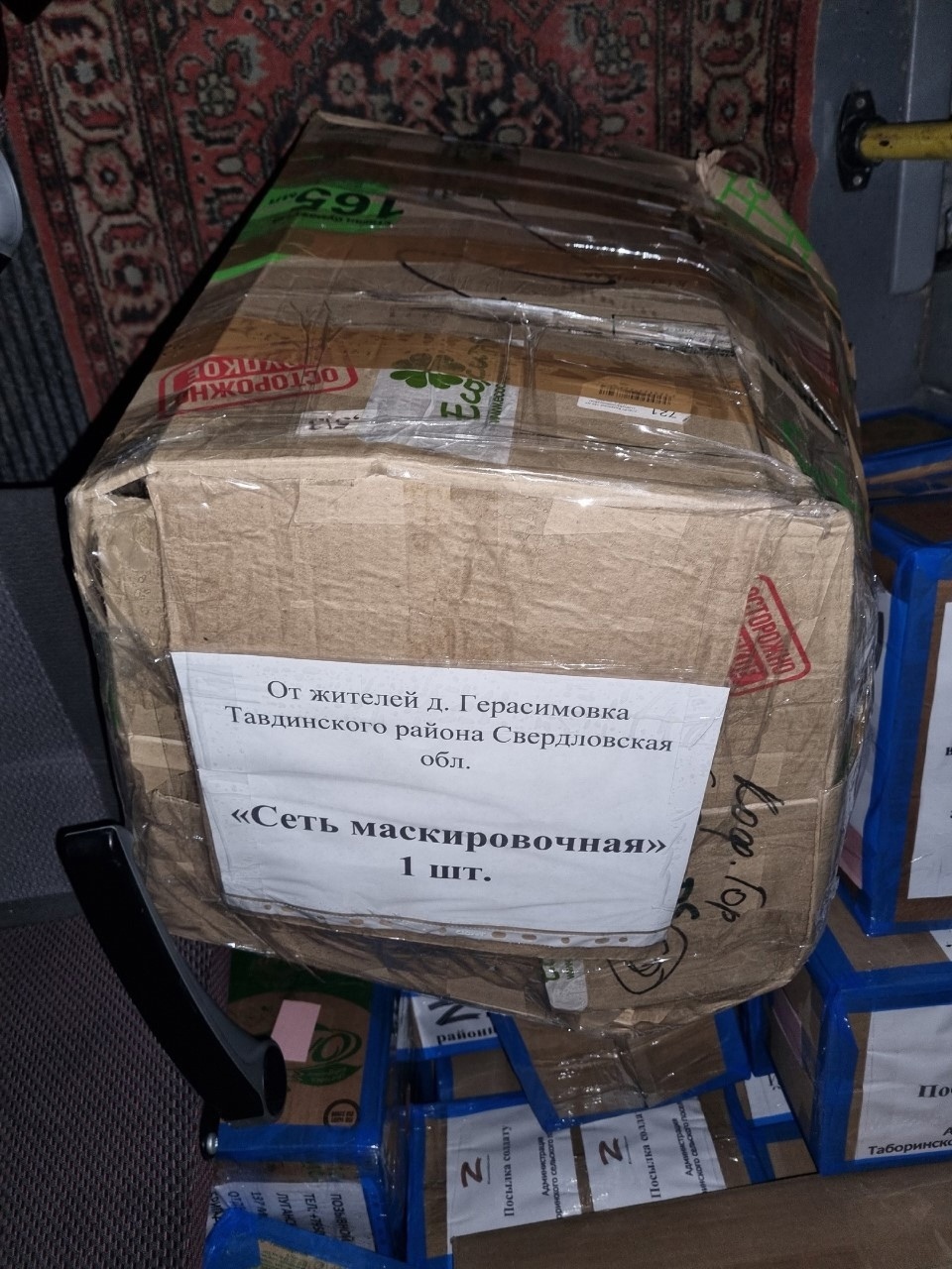 Жители деревни Герасимовка изготовили маскировочную сеть, и ночью, 30 января, она была отправлена нашим военнослужащим вместе с гуманитарным грузом Таборинского района. Сеть будет доставлена в Екатеринбург, затем силами АНО «Фонд поддержки офицеров СВВПТАУ и ЕВАКУ» будет направлена в зону проведения СВО нашим бойцам.