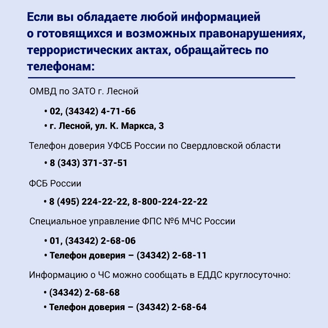 Вопросы состояния антитеррористической защищенности и принятия необходимых дополнительных мер по обеспечению безопасности рассмотрены сегодня на заседании антитеррористической комиссии под председательством главы Лесного Сергея Черепанова.