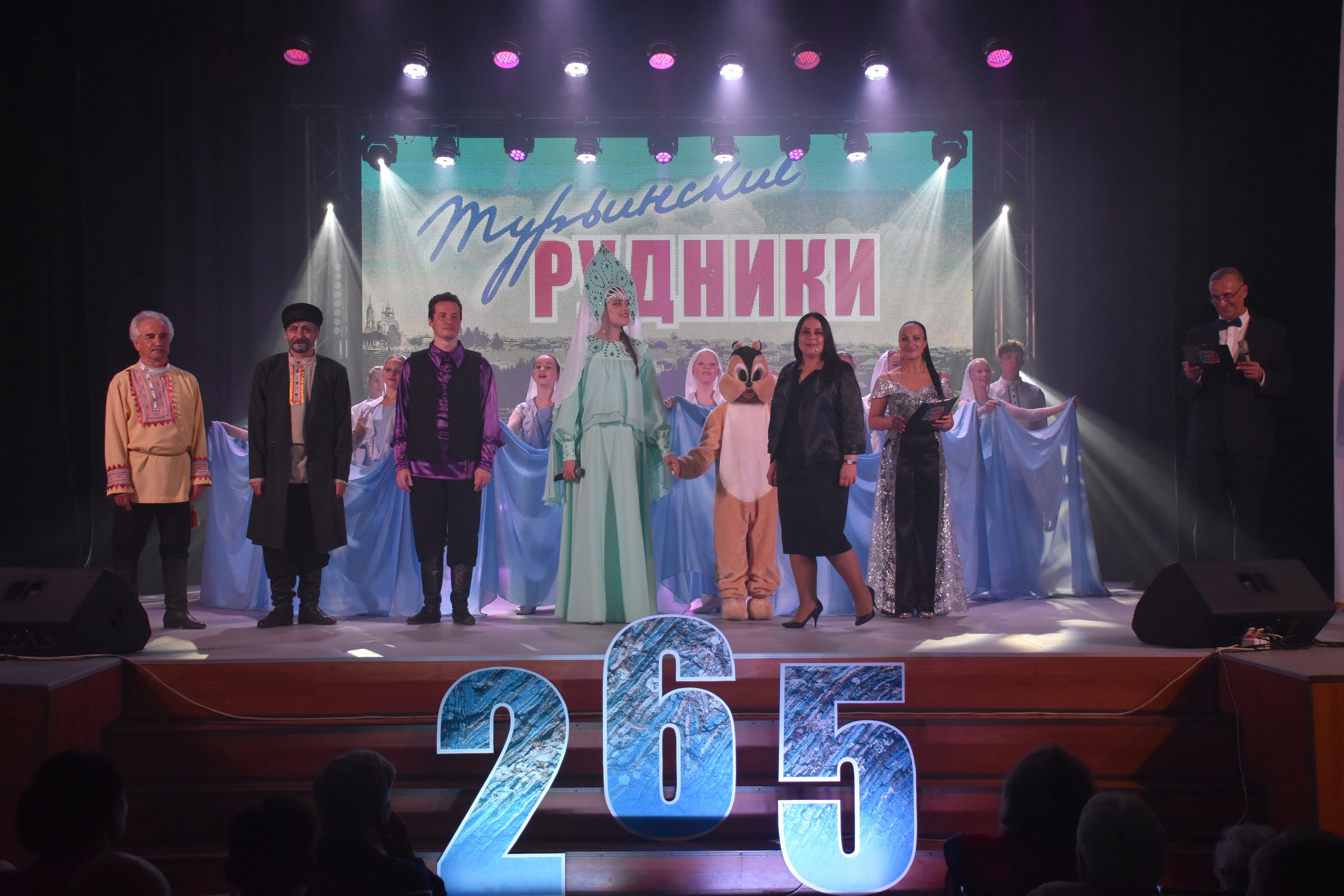 На сцене: ансамбль «Солнечная карусель», Анатолий Белый исполняет песню «Есть только миг», цирковой коллектив «Скедни» представляет номер «Время», поют вокальные коллективы «Узорица» и «Мелодика»… Или разворачивается историческое действо – ведущие рассказывают легенды об открытии Максимом Походяшиным рудного месторождения, а в номере танцевальной студии «Озорной воробей» появляется сама река Турья (А. Новикова), давшая имя рудникам…