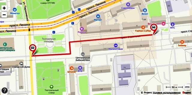 Перекрытие улицы Пархоменко на время строительства и работы новогоднего городка на Театральной площади / Сервис Яндекс. Карты