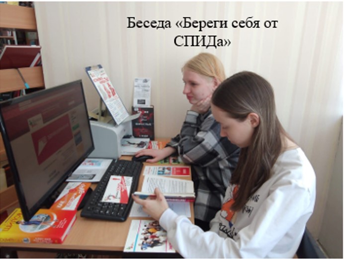 В рамках Всемирного дня памяти людей умерших от СПИДа, библиотекарь познакомила молодёжь с сайтами: 15 знаменитых жертв , Эпидемия про, которую не говорят , Нулевой пациент , Единый информационный портал профилактики и борьбы со СПИД , книгами: Гурина, Ю. «Мы же взрослые люди», Литвиновы А. и С. «Над пропастью жизнь становится ярче», и фильмами.