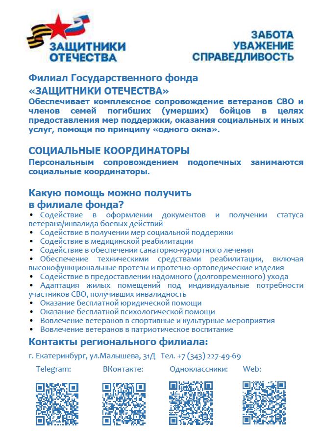 В соответствии с Указом Президента Российской Федерации от 3 апреля 2023 года № 232 «О создании Государственного фонда поддержки участников специальной военной операции «Защитники Отечества» с 01 июня 2023 года осуществляет свою деятельность филиал Государственного фонда поддержки участников специальной военной операции «Защитники Отечества».