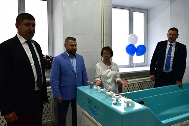 Зал гидротерапии открылся в ГАУЗ СО «Тавдинская ЦРБ», который оказывает физиологическое и лечебное действие на организм. Глава округа, секретарь местного отделения ВПП «ЕДИНАЯ РОССИЯ» В.В. Миронов и председатель Думы городского округа Д.П. Нохрин осмотрели новое оборудование. Главный врач ГАУЗ СО «Тавдинская ЦРБ» А.П. Паньков информировал, что гидромассажная ванна используется для подводного, лечебного массажа всего тела пациента или его части струей воды, направляемой с помощью массажного шланга под водой. При этом способе массажа действуют механические и тепловые факторы. Ванну принимают в комфортной температуре воды - 36-38 ˚С.