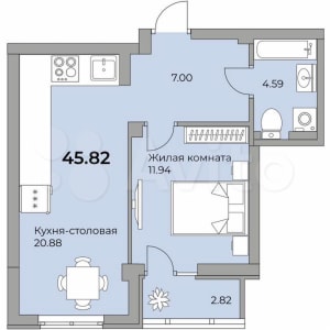 - Общая площадь: 45.9 м²